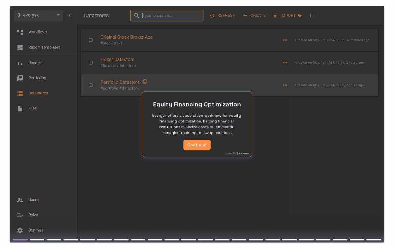 Everysk optimizes equity financing by streamlining financing term analysis, executing trades, and tracking cost savings. By pulling in portfolio data and various equity swap axes detailing financing terms for different underlying equities, institutions can assess the potential benefits of switching positions to different brokers.